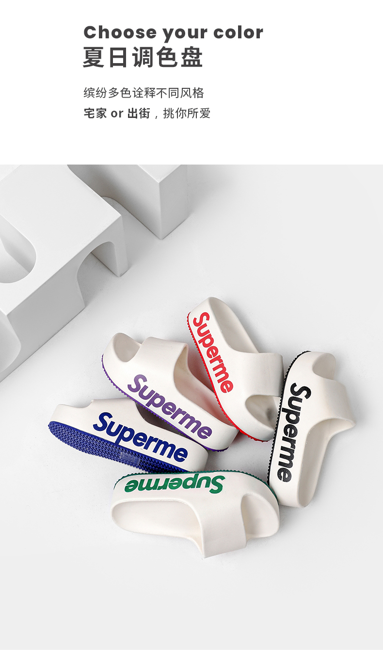 产品名称:superme厚底凉拖